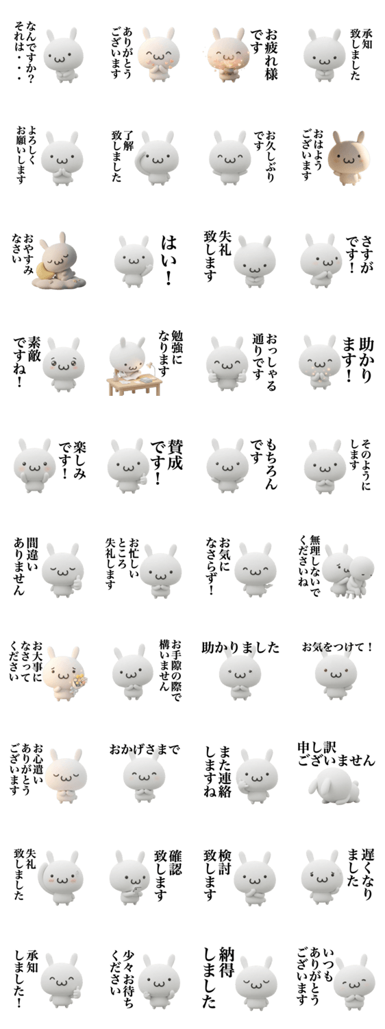 | スタンプ説明 | ず〜っと使わずにはいられない敬語を使うウサギのスタンプです。 |