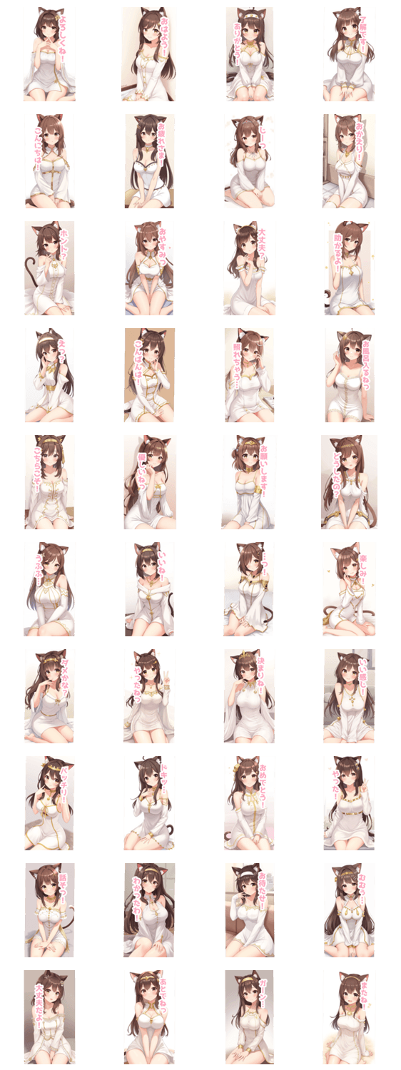 | スタンプ説明 | エジプト/女の子/かわいい/癒し/萌え/日常/挨拶/使いやすい/JK/美少女/ブラウン/茶髪/ロングヘア/ナチュラル/会話/返信/学生/女子高生/高校生/ゴージャス/ドレス/猫耳 ※このスタンプはトークルームで大きく表示されるBIGスタンプです。 |