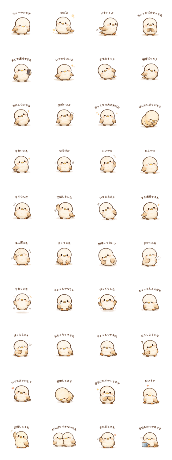 | スタンプ説明 | ふんわりやさしい小鳥のスタンプ第2弾 毎日使いやすい言葉を中心に、やさしく気持ちを伝えられるスタンプです。 大人かわいいシンプルなデザインで、友達にもお仕事にも◎ |