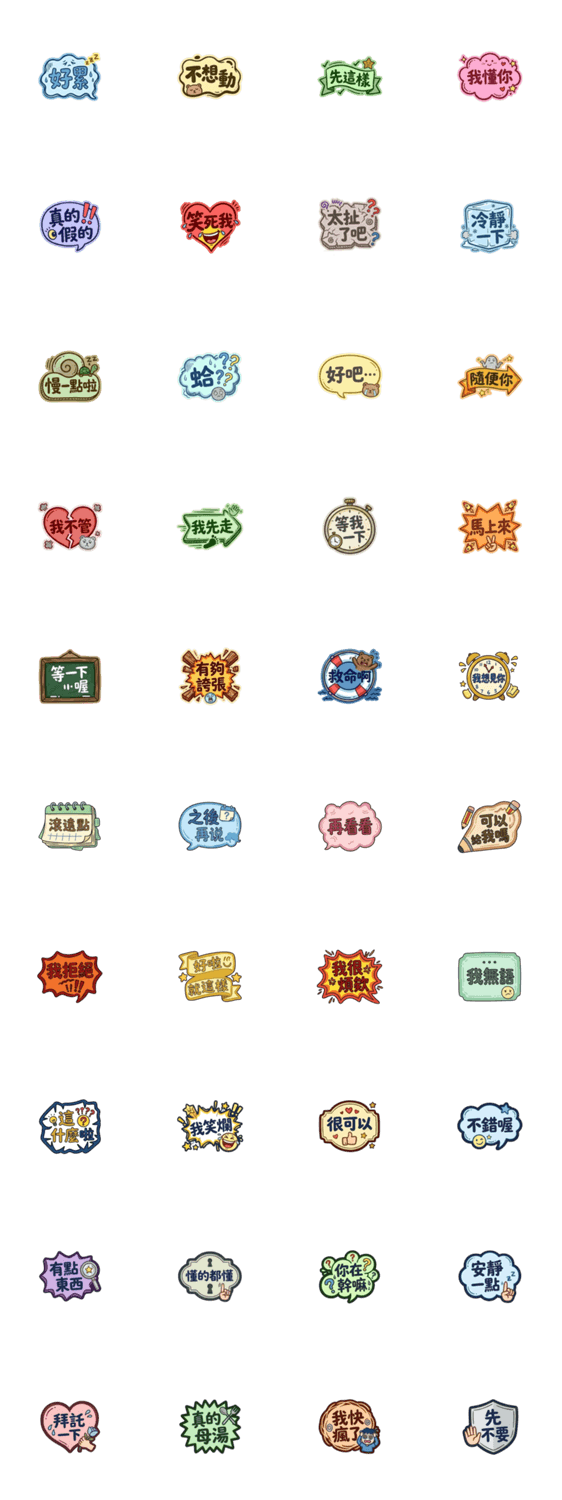 | スタンプ説明 | Colorful graffiti letters, they're hilarious! These stickers will show up extra large in chats. |