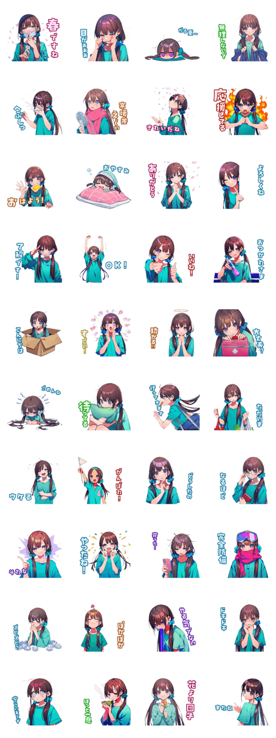 | スタンプ説明 | つらい花粉や寒暖差を気遣うおさげ髪の女の子。春/日常/挨拶/大人/女子/かわいい/癒し/応援/友達/家族/恋人/学校/イラスト/萌え |