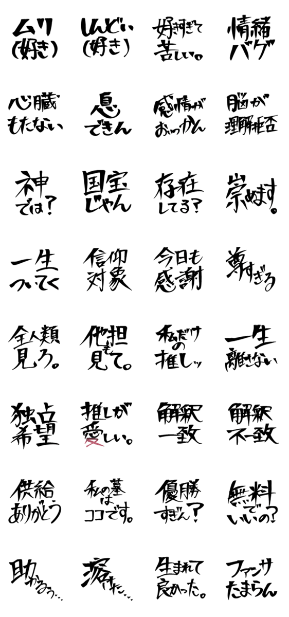 | スタンプ説明 | 推しが好きすぎて語彙力が無さすぎるオタクです。 |
