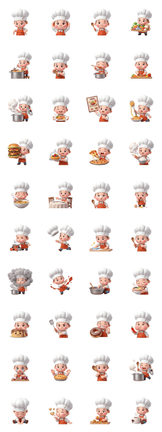 | スタンプ説明 | chef, delicious food, hungry, let's eat, thank you, cute chibi |