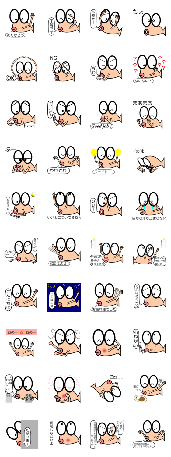 | スタンプ説明 | 「めできん」は「でめきん」に似ていますが、「でめきん」ではありません。彼は不思議な生き物ですw彼で楽しんで下さい。 |