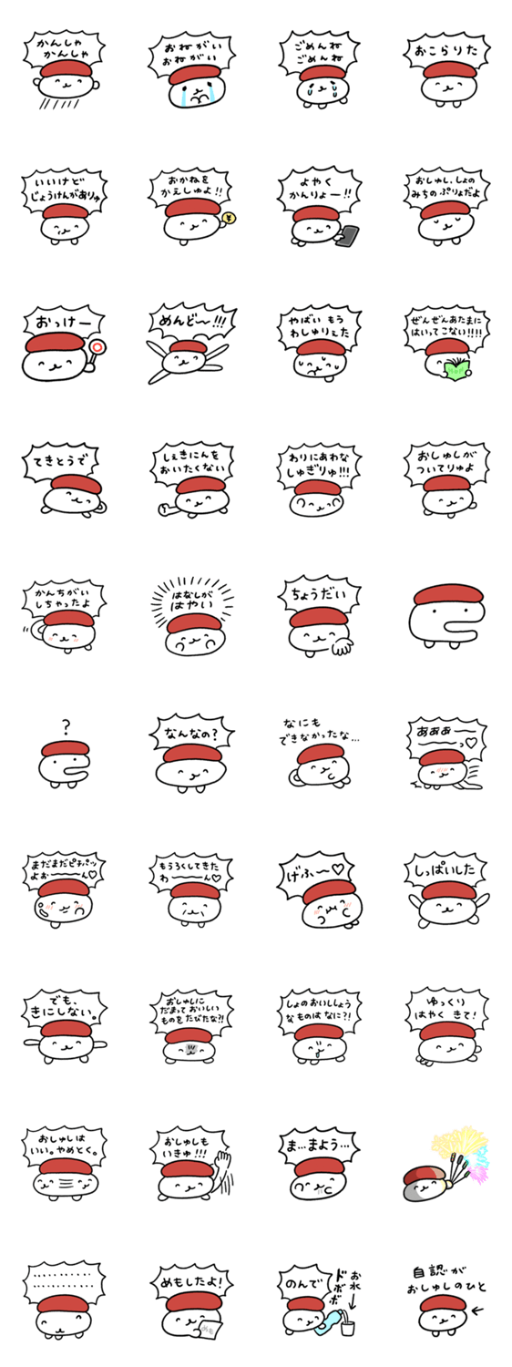 | スタンプ説明 | おしゅしは怠け者だし強欲だけど、なんか憎めない奴です。私もです♪という方はぜひ使ってみてくださいね! |