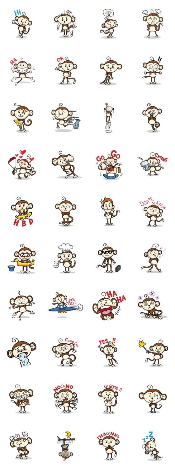 | スタンプ説明 | Hello, my name is MON. Great to see all of you.MON is a cute monkey sticker that you can fine me in LINE. Download and enjoy your chat - enjoy with MON. |