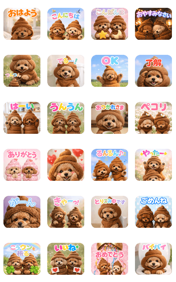 | スタンプ説明 | 飛び出す トイプードル うんこ 日常スタンプ/うごく/動く/挨拶/ポップアップ/トイプー/うんち/アプリコット/下品/ネタ/動物/子犬/実写/写真リアル/わんこ動く/山田まぽん作 |