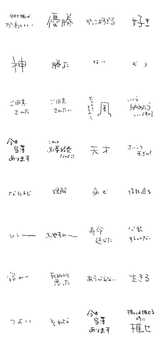 | スタンプ説明 | 2次元・3次元・アイドル・演劇・バンド…様々な推し活に。 |