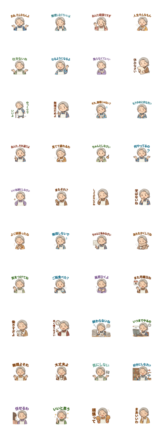 | スタンプ説明 | 和みばあちゃん ※このスタンプはトークルームで大きく表示されるBIGスタンプです。 |