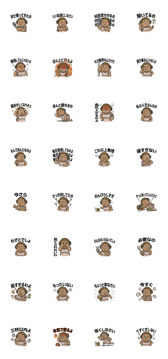 | スタンプ説明 | お梅ばあちゃん怒ってる ※このスタンプはトークルームで大きく表示されるBIGスタンプです。 |