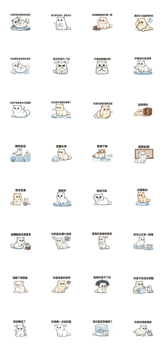 | スタンプ説明 | Persian cat, I've put up with you for so long! These stickers will show up extra large in chats. |