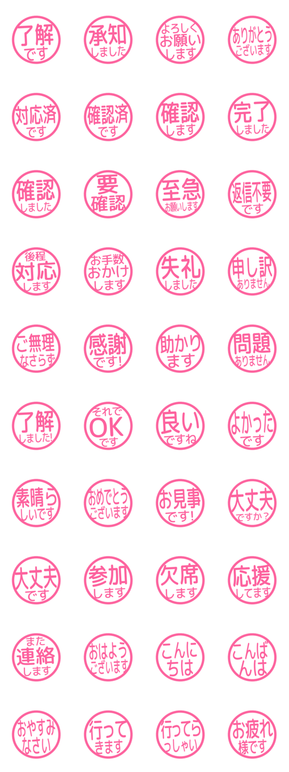 | スタンプ説明 | シンプルな敬語のはんこ風スタンプです。毎日の連絡や仕事の返事に使いやすいデザインです。 |