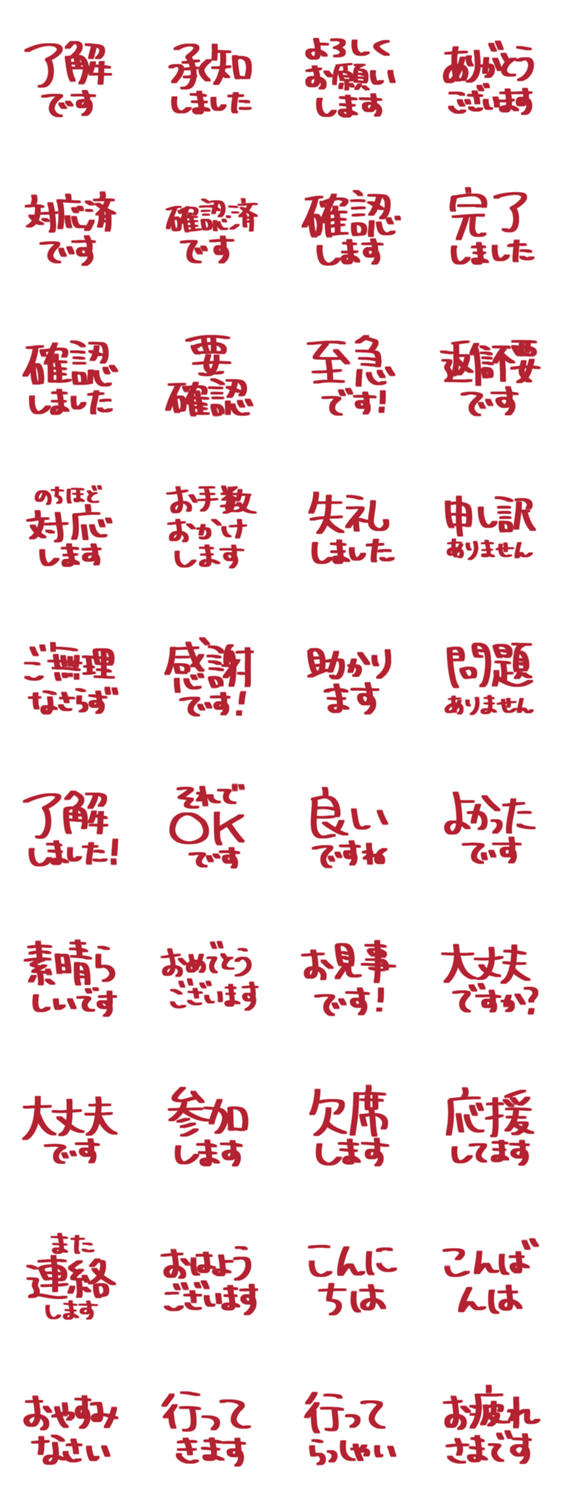 | スタンプ説明 | シンプルな敬語の手書き文字スタンプです。毎日の連絡や仕事の返事に使いやすいデザインです。 |