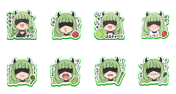 | スタンプ説明 | 目隠し悪魔の冴木さんが、春の旬をお届け!た春を彩る食材と彼女のシュールなリアクションをセットにしました。季節の挨拶や、今日の献立報告にもぴったり。冴木さん第9弾 |