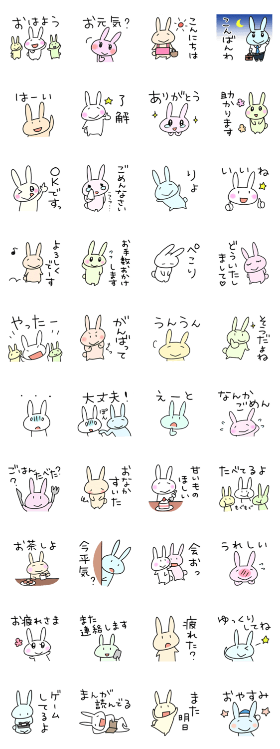 | スタンプ説明 | のんびりうさぎの日常遣い用あいさつスタンプです。 |