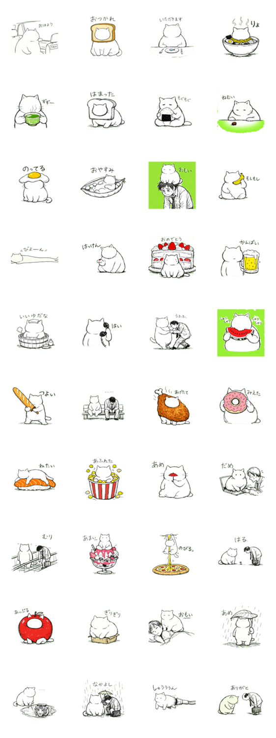 | スタンプ説明 | シュールな食事風景や、哀愁漂うシーンを集めました。日常のちょっとした隙間に、シュールな笑いを。 |