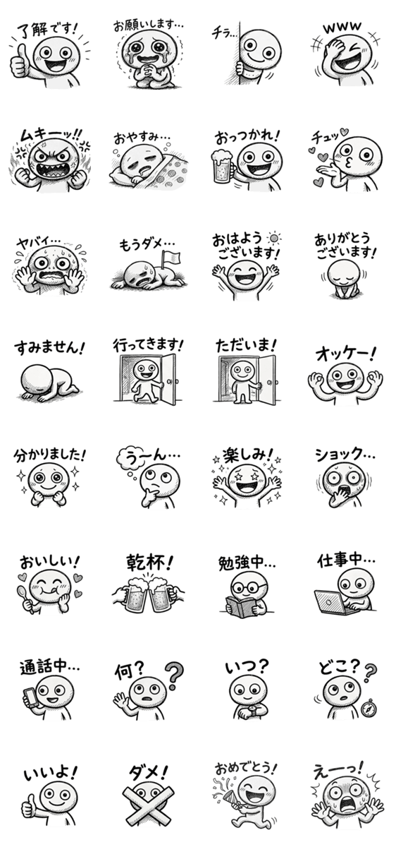| スタンプ説明 | 誰でも日常的に使いやすい丸い人間のスタンプです。 |