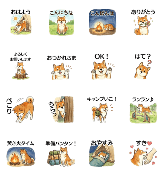 | スタンプ説明 | 佐世保の専用ドッグラン付キャンプ場「犬と休日」の開業記念スタンプ。柴犬(赤柴)の飼い主さん専用!キャンプの連絡や、柴犬特有の仕草で日常の会話を彩ります。 |