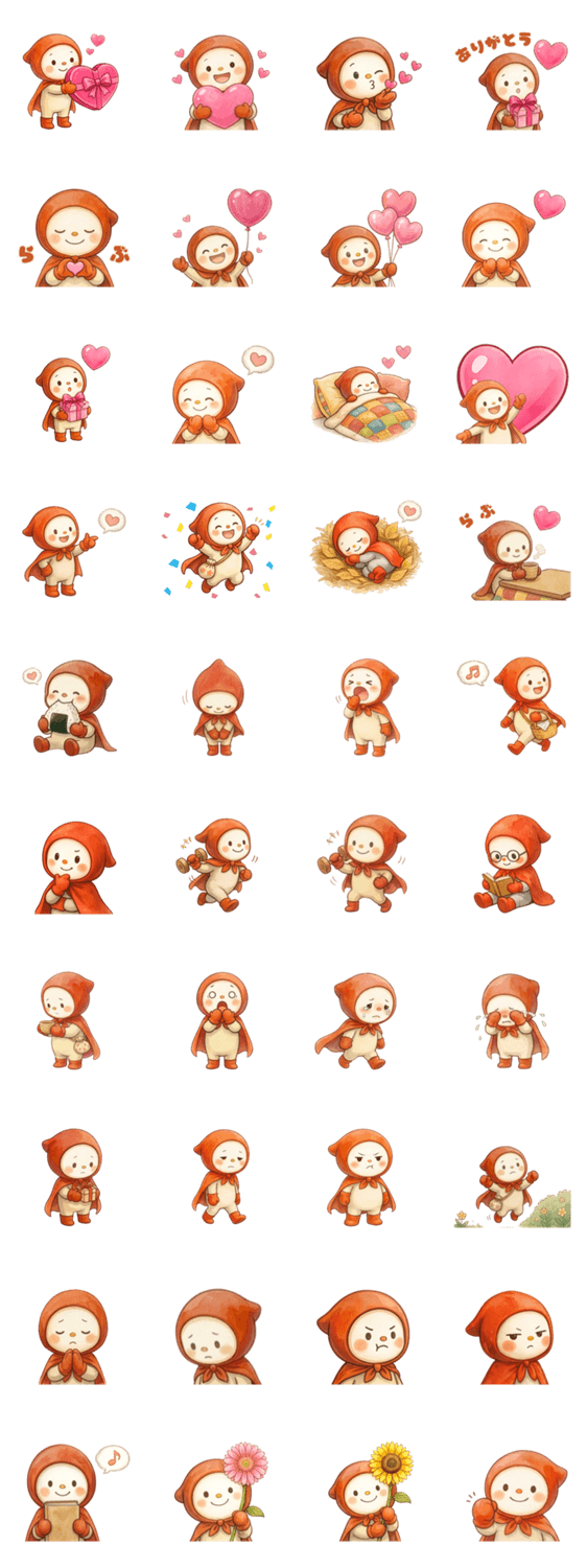 | スタンプ説明 | ふんわり水彩タッチのトントンマンのスタンプ♪ 可愛いハートスタンプと、ちょっとした気持ちを気軽に送れる文字なしスタンプのセットです。 |