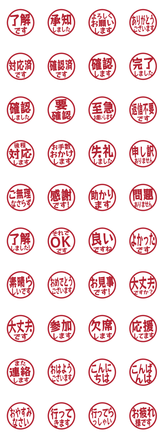 | スタンプ説明 | シンプルな敬語のはんこ風スタンプです。毎日の連絡や仕事の返事に使いやすいデザインです。 |