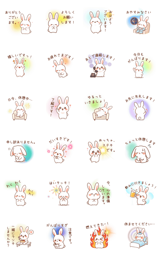 | スタンプ説明 | 仕事に使える!うさほっぺちゃんの敬語スタンプです。 |