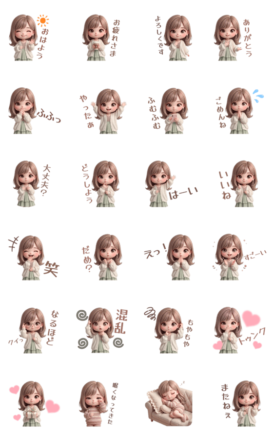 | スタンプ説明 | 3Dのぷにぷに質感がかわいい、淡色系オシャレ女子の日常スタンプです。恋人/カップル/友達/家族/挨拶/リアクション/女の子/丁寧/くすみカラー/癒し系/ペア |