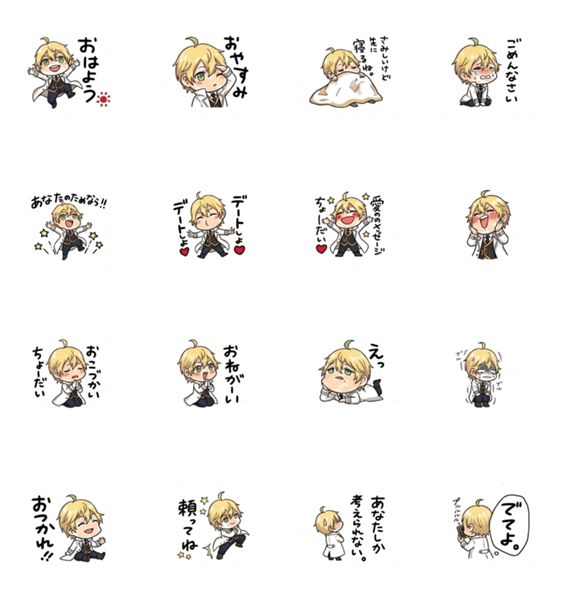 | スタンプ説明 | おはよう・ごめんなさい・デートしょ♥…シンが恋愛と日常のあらゆる気持ちを表現!毎日使える16種類のスタンプです。 |