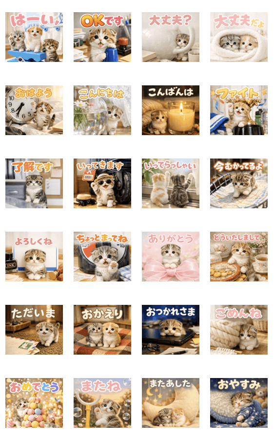 | スタンプ説明 | 手のひらサイズのとっても小さなにゃんこ達の日常挨拶スタンプです。 |