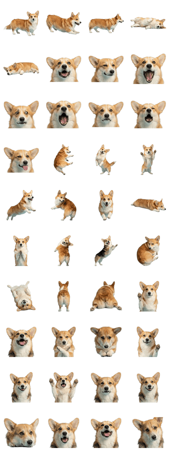 | スタンプ説明 | 短足とお尻が可愛いウェルシュコーギーの表情豊かな犬写真。愛犬家癒やしシュール面白い日常会話ペット本物個性的かわいいゆるい家族友達仕事お祝い人気綺麗自然公園散歩プ |