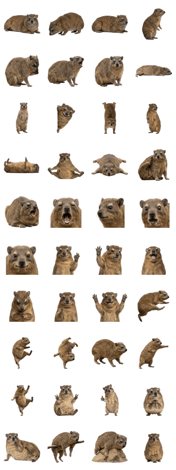 | スタンプ説明 | 日向ぼっこモフモフ岩場アフリカ希少生物岩山に住む不思議で可愛い小動物の表情豊かな写真。イワダヌキ癒やしシュール面白い日常会話本物個性的かわいいゆるい家族友達仕事 |