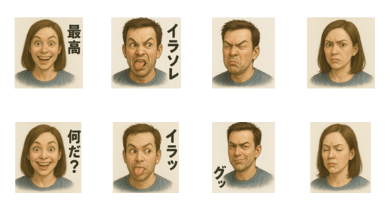 | スタンプ説明 | 疲れた変顔スタンプ、友達や恋人に日々の疲れを共有しよう! |