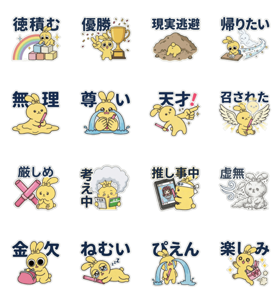 | スタンプ説明 | あなたの言葉にならない尊さや金欠などの本音を伝えます。オタク女子の切実な感情を代弁し、友達との深い共感を生むセットです。角を立てないお断りや保留スタンプも充実。 |