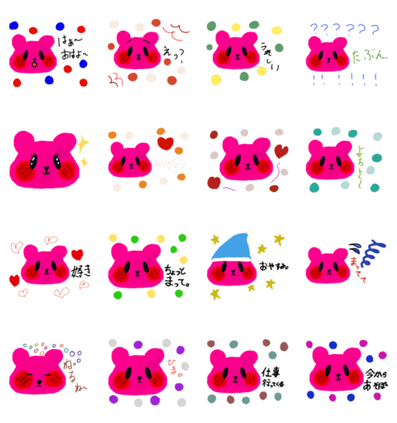 | スタンプ説明 | えまが作った、カラフルでゆるかわなくまスタンプ。 毎日の会話にちょこっとやさしさをプラスします♪ |