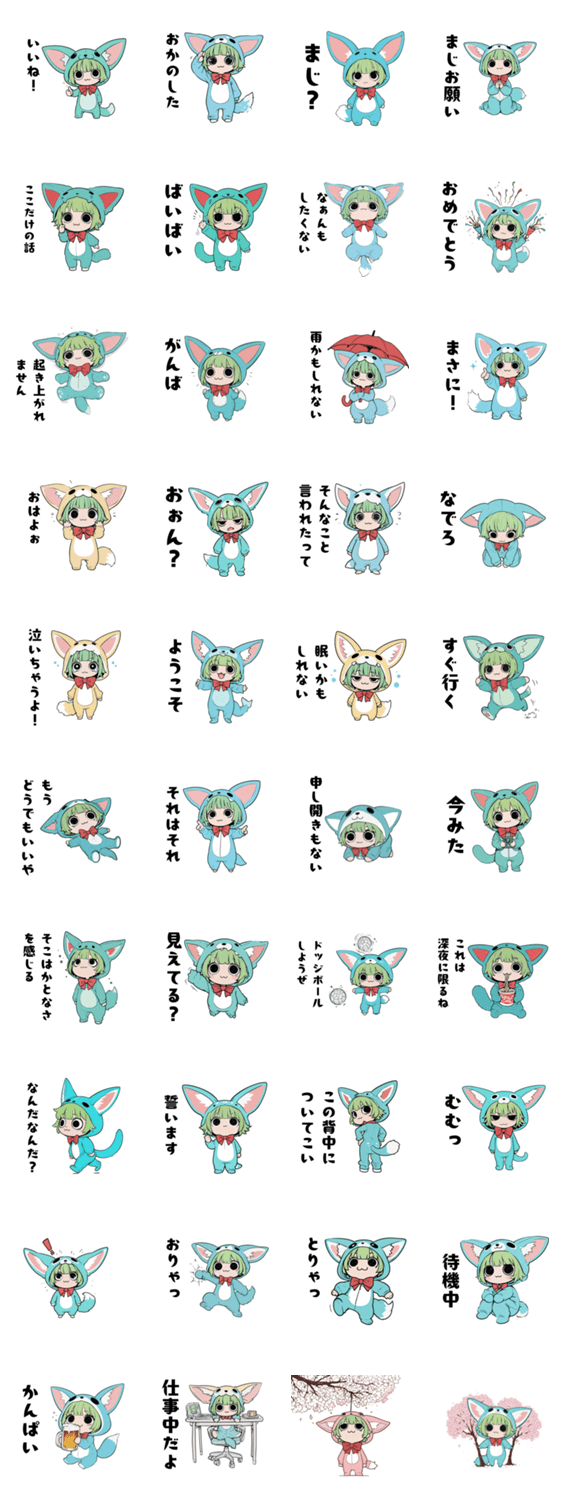 | スタンプ説明 | フェネックの着ぐるみを着た少女、ふぇねっこのスタンプです |