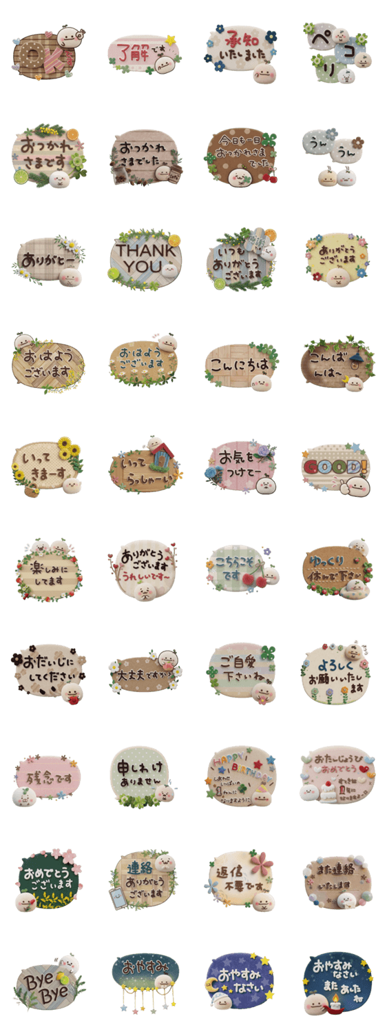 | スタンプ説明 | まるいやつらのふわふわフロッキーな大人可愛いふきだしスタンプです。よく使う言葉を集めた便利なスタンプです♪ずっと使える/敬語/丁寧/毎日/挨拶/あいさつ/もふもふ |