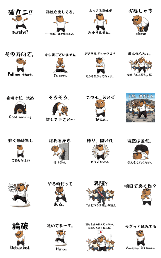 | スタンプ説明 | ダンサーカピバラの日常スタンプ カピバラ界隈全開ですねー。 カピッ!!! |
