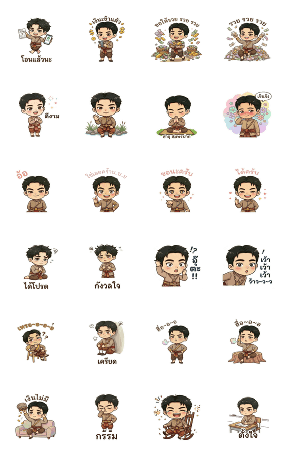 | スタンプ説明 | Financial transactions, giving and receiving blessings, happiness mixed with sadness, friendly and lovely with Thanthai |