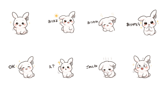| スタンプ説明 | ピアスがトレードマークのゆるかわうさぎ。日常で使いやすいスタンプをたっぷり詰めました! |