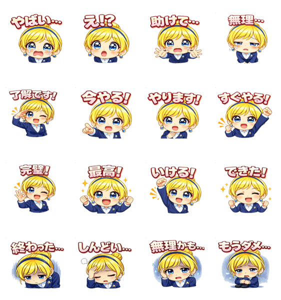 | スタンプ説明 | 毎日使いやすいスーツ女子のかわいいプリンセススタンプです。 仕事や日常の会話で使えるシンプルで見やすいデザインです。 |