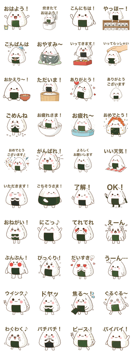 | スタンプ説明 | 三角おにぎりの「にぎまる」があいさつスタンプに♪おはよう・こんにちは・ありがとう・お疲れさまなど日常あいさつ&リアクション40種。 |