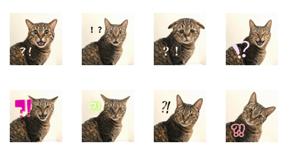 | スタンプ説明 | A set of expressive ?! reaction stickers featuring a cute tabby cat. From surprise and excitement to shock and confusion, perfect for everyday chats! |