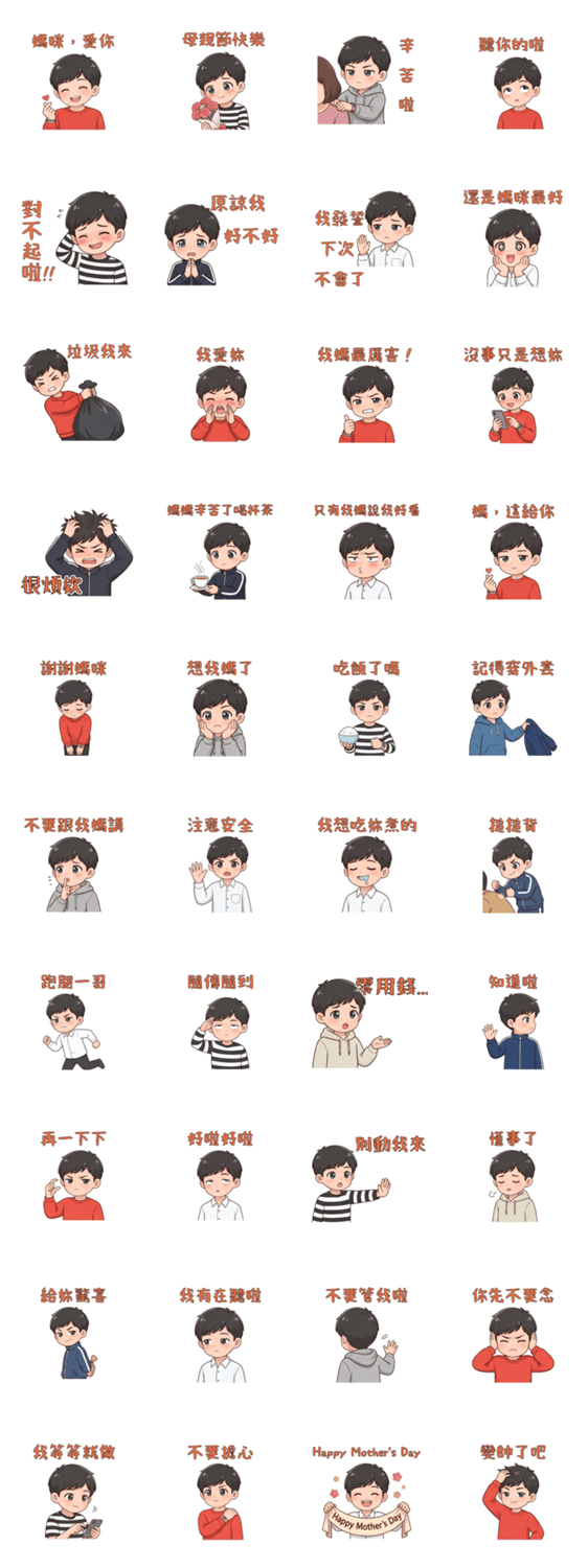 | スタンプ説明 | A sticker set from a teen's perspective, with daily replies and emotions for mom. From playful to sincere, it helps say what's hard to express. |