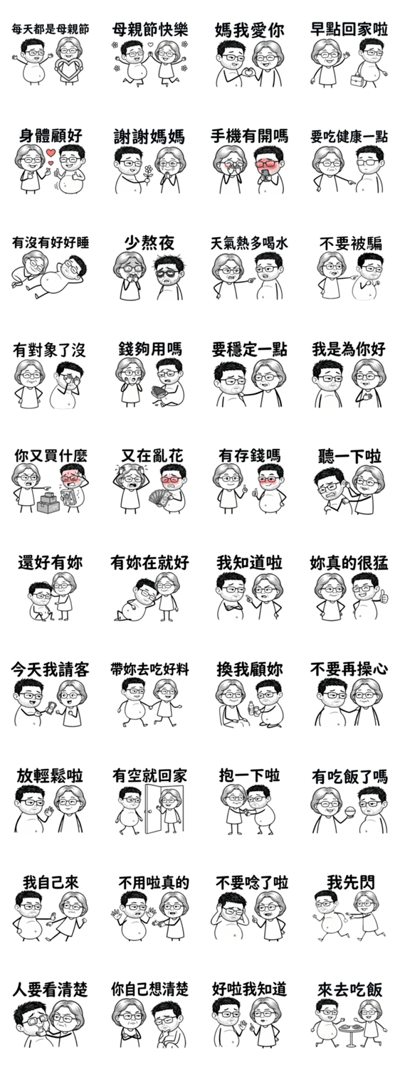 | スタンプ説明 | A warm sticker set of A-Juan and her chubby stubbly son. From nagging to care, every moment shows love beneath the surface. Perfect for everyday chats. |