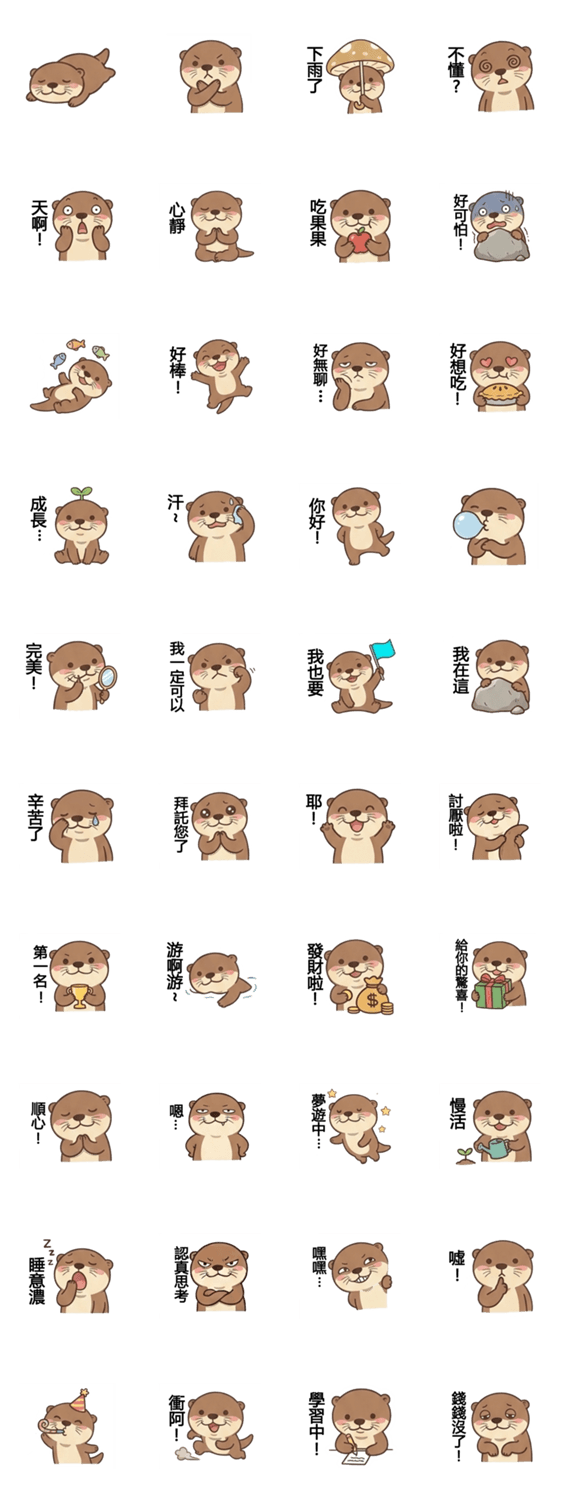 Meet Otter Art! From energetic greetings to relaxing "slow life" moments, this cute otter helps you express every feeling in your daily chat.