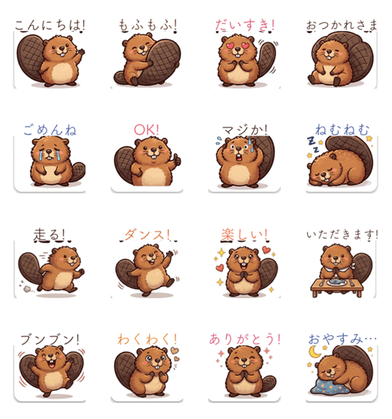 A round, fluffy beaver brings warmth to your daily chats! 16 cozy stickers for greetings, thanks, sleepy moods, and happy reactions. So soft, so kawaii!