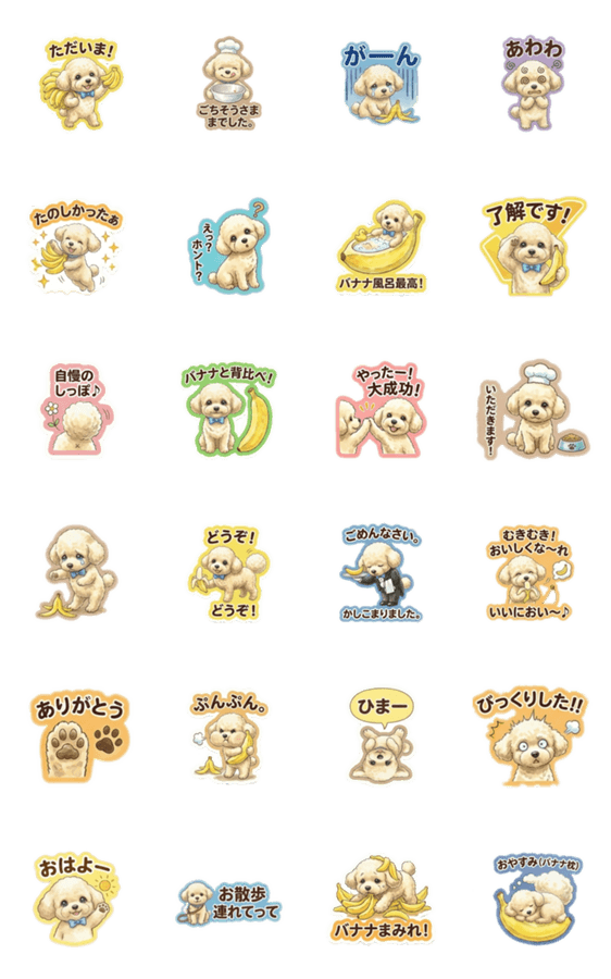 絵本の中から飛び出してきたような、トイプードルくん。バナナが大好き♥ふわふわな毛並みと優しい表情で、あなたの日常をほっこり彩ります。のんびり時間。