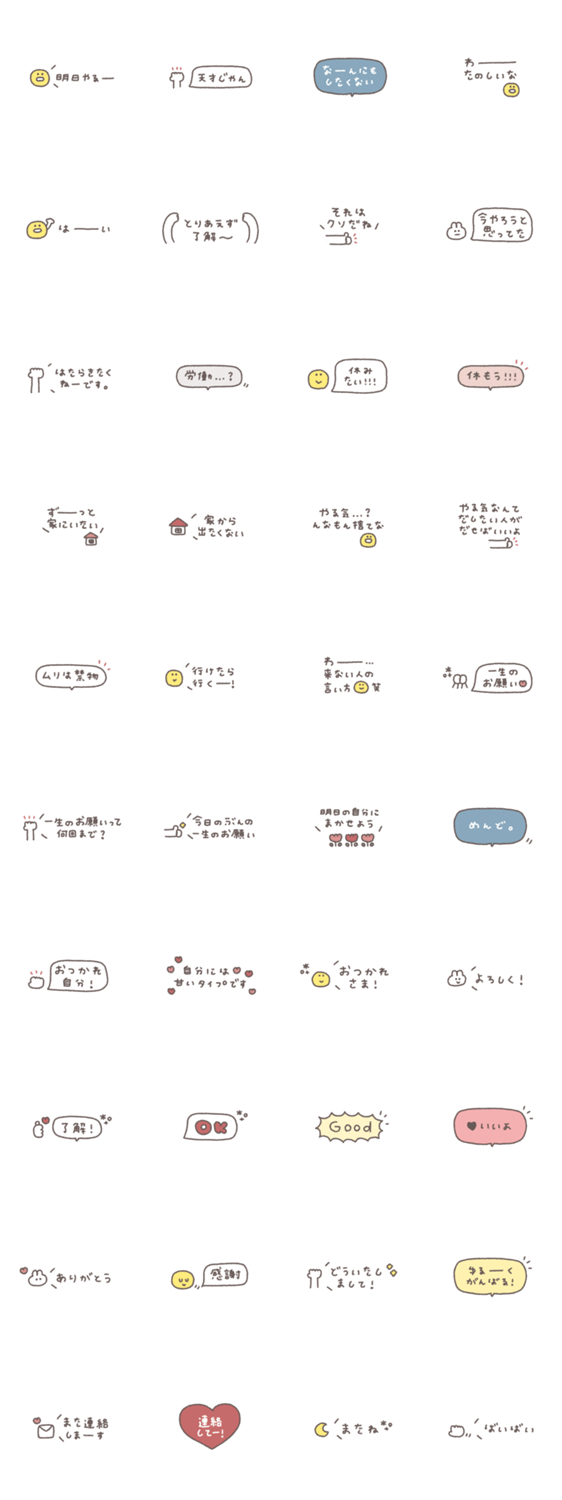 一つあると便利!シンプルなあいさつスタンプです。 細字/シンプル/大人可愛い/あいさつ/スマイル/手書き/くすみカラー/無気力
