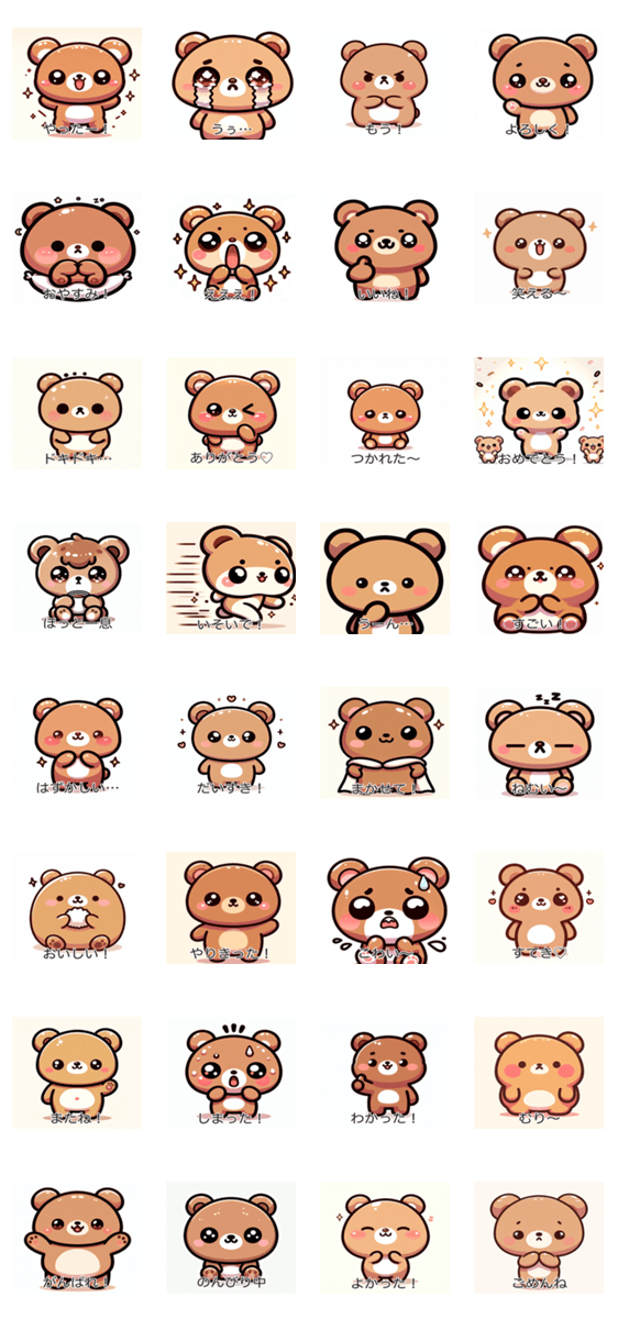 かわいいくまが日常のいろんな気持ちを表現します!