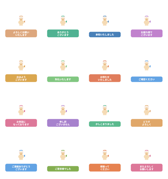 ゆるふわ馬が敬語フレーズをお届け!ビジネスや日常の挨拶に使える16種類のスタンプです。
