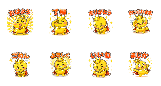| スタンプ説明 | 偉そうなのに憎めない、金ピカな「うざきん大王」の日常スタンプ。毎日使いやすいあいさつとリアクションを収録。 |